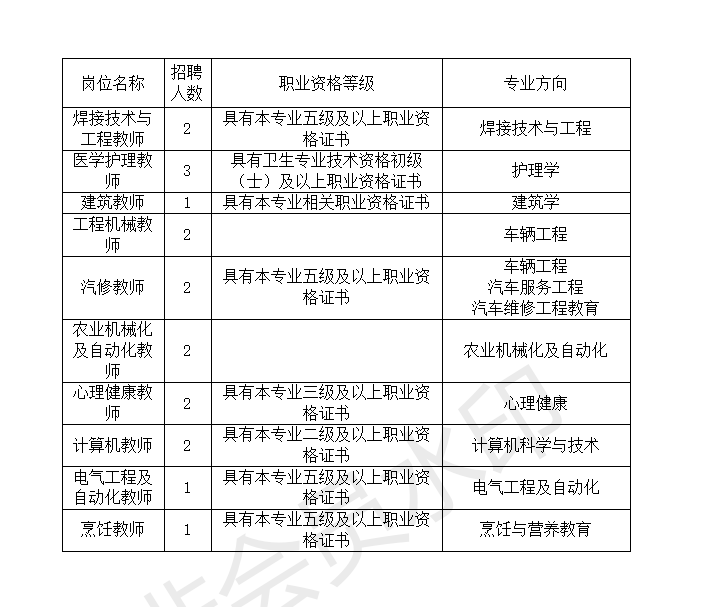二、招聘岗位人数、职业资格等级、专业方向