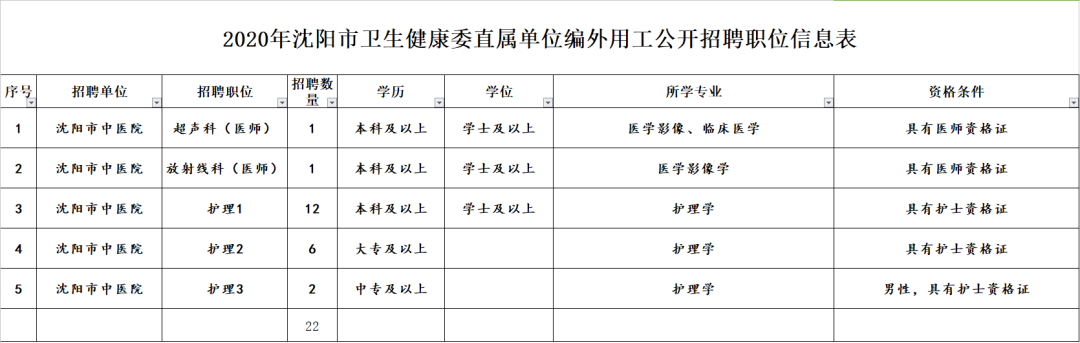 详见《2020年沈阳市中医院编外用工公开招聘职位信息表》。