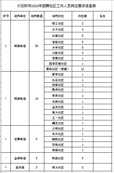 附件1:大石桥市2020年招聘社区工作人员岗位需求表。