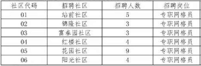 本次公开招聘的专职网格员共51名。拟招聘人数如下: