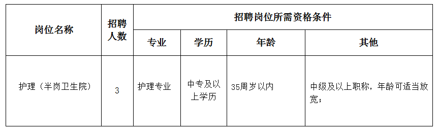 4、招聘学历及专业要求:护理专业中专及以上学历,有护士执业证;