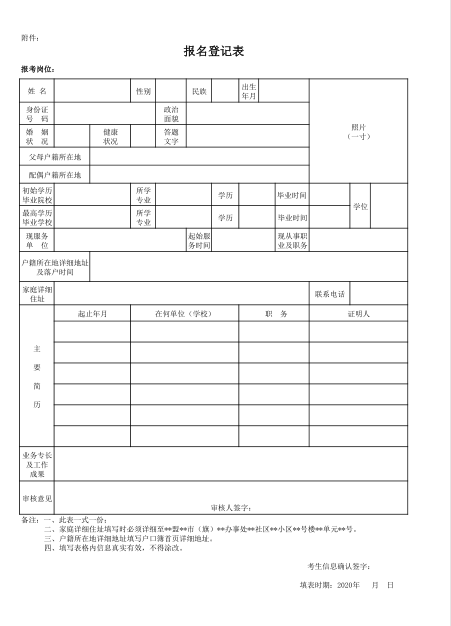 2020年10月19日至10月23日通过锡林浩特市人民政府门户网站、锡林浩特市人力资源和社会保障局微信公众平台、锡林浩特市政务服务局微信公众平台、锡林浩特市房地产管理局微信公众平台、锡林浩特市自然资源局微信公众平台统一向社会发布公告。(1)报名工作由市政务服务局、市房产局、市自然资源局分别负责,市人力资源和社会保障局指导。采取现场报名方式进行,《报名登记表》从发布招考公告网站上下载。报名和考试不收取任何费用。报名地址:锡林郭勒盟政务服务大厅一楼综合受理窗口16号、17号、18号窗口。报名时间:2020年10月21日—10月25日(上午8:30--12:00,下午14:30--17:30),周六日不休息。(2)每位报考人员只能报考一个岗位。报考人员需按照《报名登记表》要求认真填写报名信息。报名前,报名人员要认真阅读招聘简章,选择适合自己的招聘岗位,并在报名表上如实填写个人信息。报名时,报名人员须提供以下材料: ②学历证书原件和复印件,同时提供教育部学历验证报告,验证期应在现场审核确认结束前有效。 ③报考人员须提供本人居民身份证、户口本原件及复印件(对于入学时将户籍迁到就读学校集体户,毕业后两年内未将户口及时迁回的报名人员,提供相关证明和父母户口本原件及复印件;对配偶为锡林浩特市户籍报考人员提供结婚证和配偶户口本原件及复印件。); ⑤符合报考条件的市内外签有劳动合同的人员,征得工作单位和主管部门同意后方可报考,需提供相关证明材料。⑥报考人员在报名时提供的个人联系方式要在整个招聘过程保持畅通,以便于重要事项的通知。 (3)报考人员在填写个人简历时须完整填写本人就读高中、大学专科、本科和研究生的学习经历(填写起止年月、就读学校、院系和专业必须严格按照毕业证书上的专业名称填写)。须完整填写工作经历(填写起止年月和工作单位,故意隐瞒工作经历的,由此产生的后果由报考人员承担),《报名登记表》统一用汉语填写。(4)报考人员报名与参加笔试所使用的证件必须一致。(5)报考人员须对所填报信息的真实性、准确性和完整性负责,填报虚假信息或隐瞒重要信息情节严重的,取消其考试、招聘资格。报考人员要认真阅读招聘简章和岗位条件,对照个人情况,选择符合自身条件的岗位进行报考。报考人员对报考资格条件有疑问的,可拨打《简章》中公布的招聘岗位条件咨询电话。(1)资格审查工作由市政务服务局、市房产局和市自然资源局共同负责,与报名工作同期进行。资格审查合格的,视为报名成功。(2)领取准考证时间:2020年10月29日上午9:00-12:00,下午15:00-17:30,领取地点:锡林郭勒盟政务服务大厅一楼综合受理窗口16号、17号、18号窗口,请报名成功的考生及时关注锡林浩特市政府网站、锡林浩特市人力资源和社会保障局微信公众平台、锡林浩特市政务服务局微信公众平台、锡林浩特市房地产管理局微信公众平台的公告、锡林浩特市自然资源局微信公众平台。(1)笔试开考比例不低于3:1,即报名人数与招聘岗位比例不低于3:1,达不到开考比例的,相应核减招聘岗位数。(2)笔试内容包括综合知识和申论两部分,其中综合知识占50%,申论占50%。笔试成绩满分为100分。本次招聘工作不指定复习范围和考试参考用书,不举办也不委托任何机构举办考试辅导班、培训班。(3)笔试采用闭卷方式进行,考场按照标准化设置。提供蒙汉两种文字试卷,笔试需要提供蒙文试卷的考生须在报名表指定位置注明(报考蒙汉兼通岗位的人员笔试和面试必须选择一项考试用蒙古语作答,另一项用汉语作答。订制蒙文试卷的考生,必须用蒙文答卷,选择汉文试卷的考生必须用汉文作答)同一试卷出现两种以上文字的,以及不按选定语言文字答题和未使用规定用笔答题的,按零分处理。答题用笔为黑色碳素笔。(4)笔试结束后,对参加考试的蒙古族、达斡尔族、鄂伦春族、鄂温克族人员,在笔试成绩上加2.5分。笔试总成绩=笔试成绩+民族加分。(5)笔试时间:2020年10月31日,笔试地点及相关要求,详见准考证。(1)笔试总成绩公示后按照招聘岗位考试总成绩由高到低的顺序,按照2:1的比例确定的人员进入面试。同一岗位因笔试成绩相同超过2:1比例的并列人员全部进入面试。《面试通知书》上注明面试的时间、地点、需要携带的证件及面试须知等。《面试通知书》需现场领取,领取时间地点另行通知。逾期不领取的,视为自动放弃面试资格。(2)面试成绩满分为100分。面试采取结构化面试方式进行。主要考察举止仪表和综合分析能力,言语表达能力,组织计划能力,面试成绩当场公布。(3)实际到场参加面试人数等于或少于该岗位实际招聘计划数的岗位,该岗位考生的面试成绩须达到当天面试所在考场(同试题、同考官组)所有面试人员平均成绩,方可进入下一环节。 按照笔试成绩占40%、面试成绩占60%的比例加权计算参加考试人员的考试总成绩,即:总成绩=笔试总成绩(含政策性加分)×40% +面试成绩×60%。笔试总成绩、面试成绩、考试总成绩均计算到小数点后两位数,尾数均四舍五入。如出现总成绩并列的,顺序保留下一位小数。1.总成绩公布后,根据报考人员报考岗位,按照报考人员总成绩由高到低的顺序与招聘岗位1:1的比例确定体检人数。拟进入体检范围人员最后一名出现总成绩并列情况的,对并列人员按照面试成绩高者进入体检,