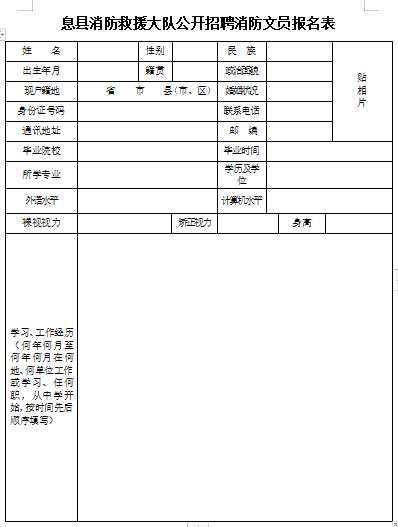1、报名方式:现场报名方式。现场报名地点为息县消防救援大队三楼综合办公室(地址为息县公安局东侧)。