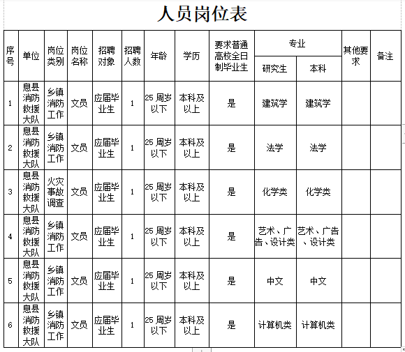 招聘消防文员6名,主要从事乡镇消防工作(包括宣传、培训、辅助消防监督执法、火灾事故调查、灭火救援等)。