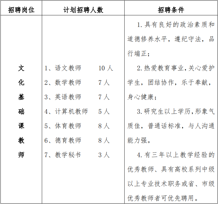二、文化基础课教师招聘计划(45人)