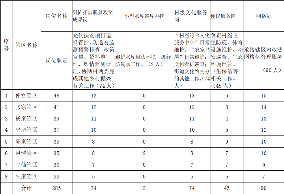 本次在仲宫街道招聘乡村公益性岗位共285人。