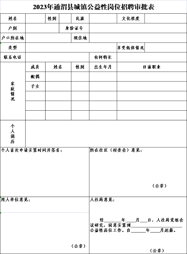 2.2023年通渭县城镇公益性岗位招聘审批表