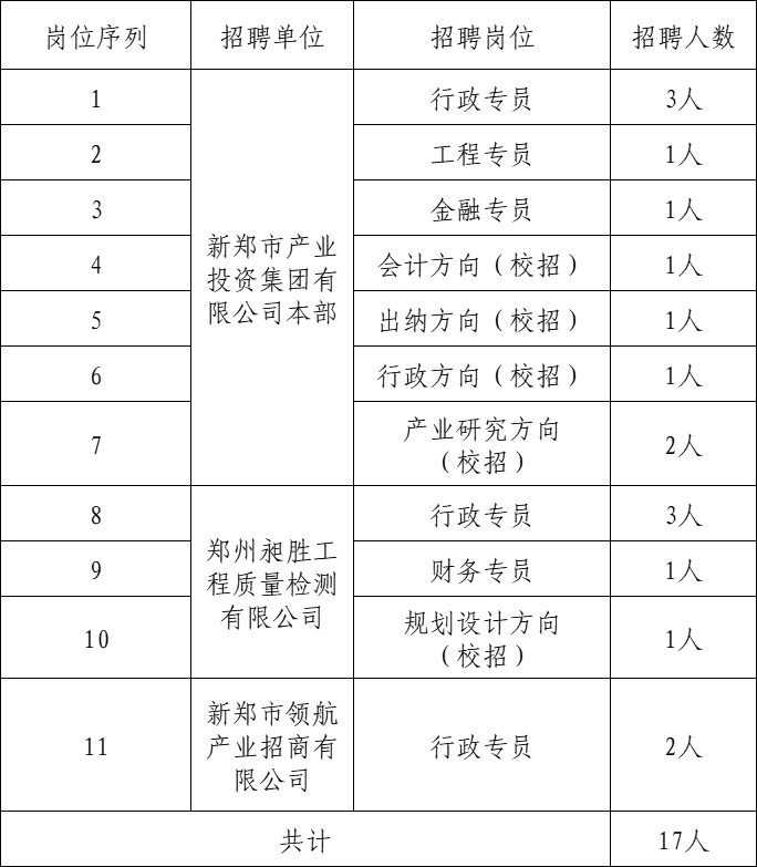 岗位详情见附件:《新郑市产业投资集团有限公司公开招聘岗位计划表》。