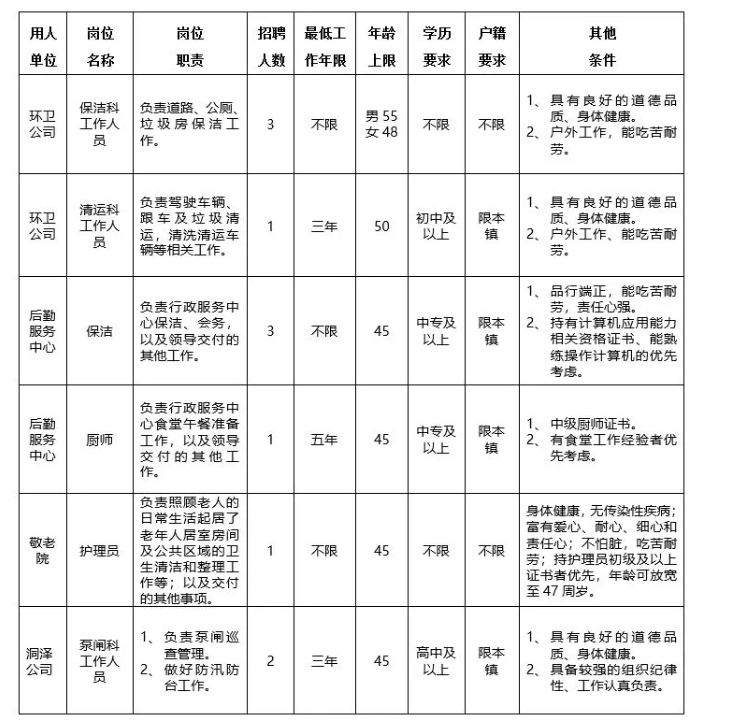 即日起洞泾镇政府委托洞泾镇社区事务受理服务中心面向社会招聘工勤人员若干名,现将有关事项公告如下: