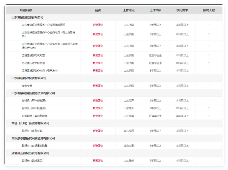 山东发展投资控股集团有限公司(简称山东发展集团)于2025年1月由原山东国惠与原山东发展战略重组设立,是定位于发展现代产业和战略性新兴产业、支持全省基础设施建设、推进新型工业化和服务绿色低碳高质量发展的国有资本投资公司。山东绿色能源投资有限公司、山东发展新能源有限公司作为山东发展集团的直属企业,根据公司业务发展需要,按照公开、平等、竞争、择优的原则,面向社会公开招聘优秀人才,现公告如下。
