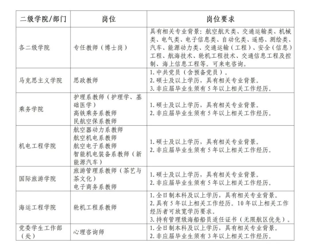 请有意者将个人简历投递至:syhyhr@hnasatc.edu.cn,邮件主题和简历请命名为:意向岗位+姓名+目前所在地+博士/硕士/本科+教授/副教授/讲师/助教+是否退伍军人(无需附毕业证书等证明材料)。
