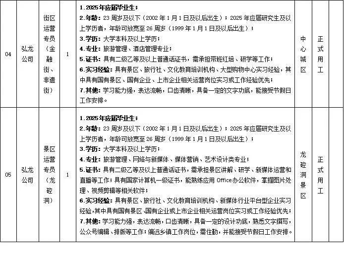 (3)04、05岗位报名地点:福建省龙岩市新罗区东城东街龙川东路90号301室福建龙岩弘龙旅游开发有限公司综合部;联系人:陈女士,联系电话:0597-3229598。