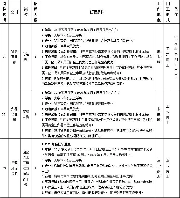 (一)本次招聘的人员试用期为3个月(贸易事业部总经理岗位试用考察期为6个月),试用期满经考核合格的正式录用,不合格者取消录用。薪酬待遇按照所在单位薪酬管理办法执行。