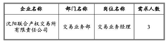 附件:沈阳联合产权交易所有限责任公司招聘岗位信息表