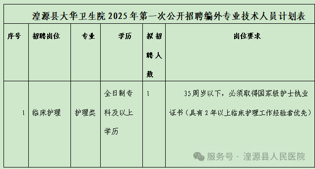 湟源县第一医共体大华分院2025年第一次公开招聘编外专业技术人员公告