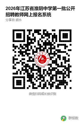 (1)利用微信扫描下方二维码,跳转至江苏省淮阴中学面向2026届普通高校毕业生公开招聘教师报名页面,按要求填写相关信息并上传相关附件。