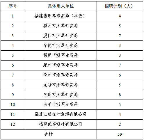 招聘结果将在福建省烟草专卖局网站公示。