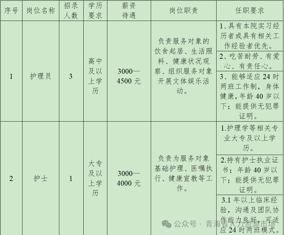 为进一步提升服务质量,保障服务对象生活照护和人身安全,西宁市社会福利院现面向社会公开招聘3名护理员及1名护士。具体招聘方案如下: