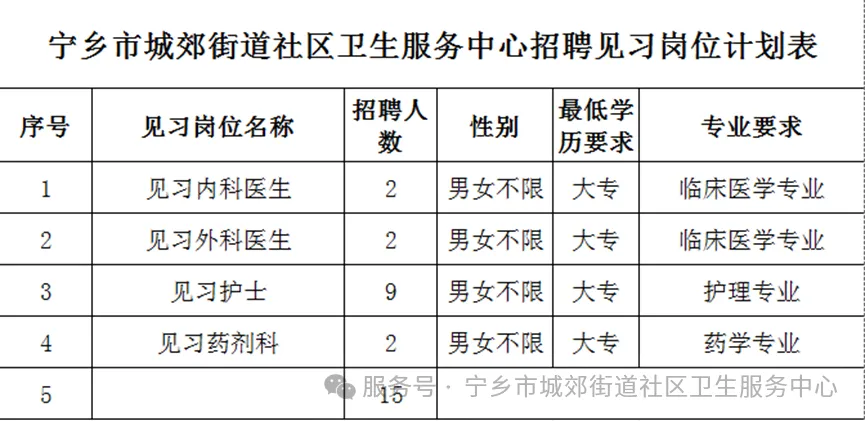 宁乡市城郊街道社区卫生服务中心是经宁乡市人社局审核认定的“湖南省长沙市高校毕业生就业见习基地”,现根据医院工作需要,特面向广大高校毕业生公开招聘见习生15人,具体公告如下: