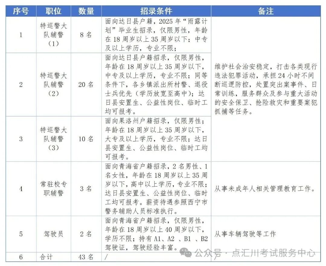 4.资格复审合格人员名单及体能测试通知将在达日县人力资源和社会保障局、达日县公安局公众号、点汇川考试服务中心微信公众号公示,公示期为3天。