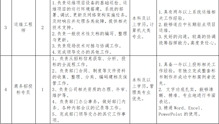 本次招聘工作人员共计6名,招聘岗位、招聘人数、岗位要求详见下表: