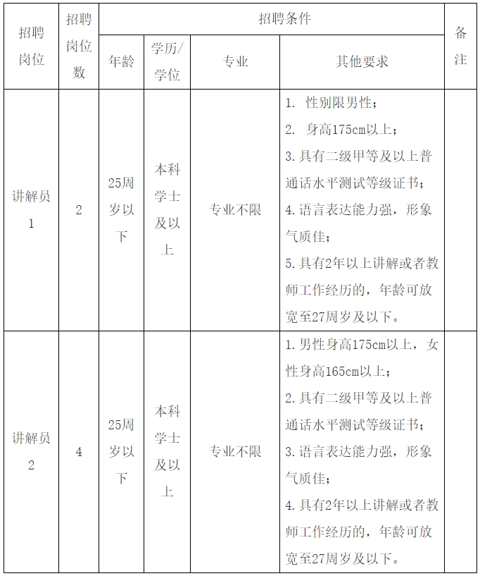 四、招聘岗位、人数及具体条件