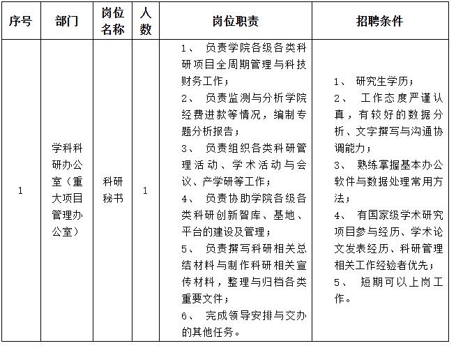 因工作需要,大连理工大学经济管理学院拟招聘派遣制工作人员1名(学院自聘),有关事宜如下: