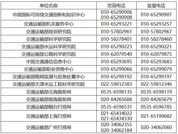 (五)交通运输部所属事业单位2026年度统一公开招聘工作技术咨询电话:010-65299061、010-65299059。