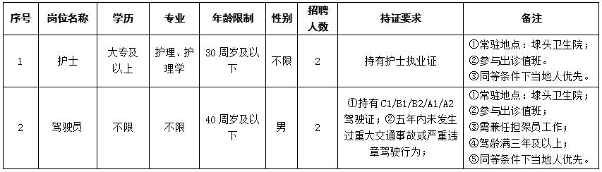 因工作需要,2025年我公司拟面向社会公开招聘两名护士和两名驾驶员。现将有关事项通知如下: