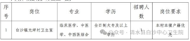 2.报名方式:现场报名(地址:清水县白沙中心卫生院综合楼二楼办公室),不接受委托报名;