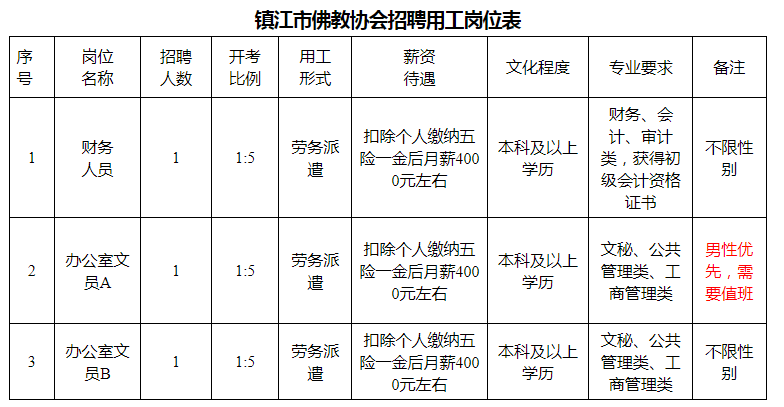 根据本单位工作需要,镇江市佛教协会决定招聘编外工作人员3名。