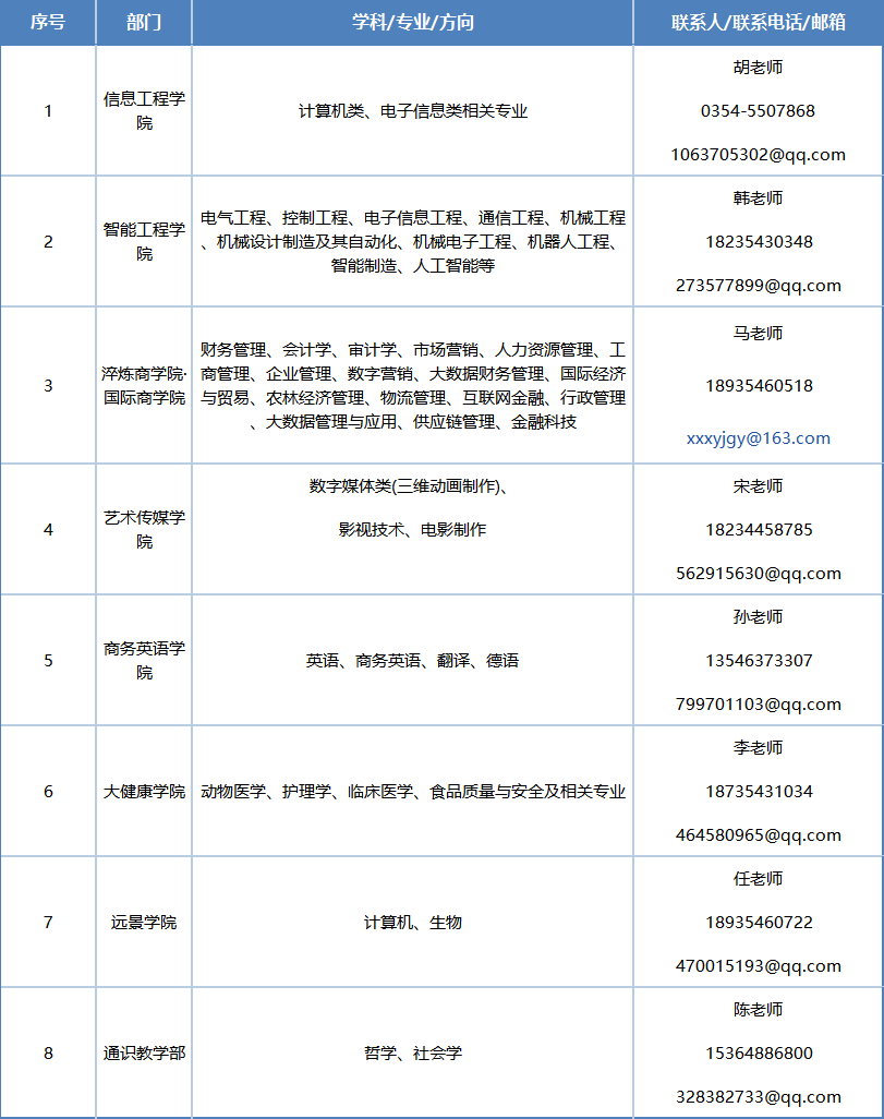 个人将应聘材料发送至对应二级教学单位招聘邮箱。邮箱主题命名为:外聘教师+姓名+专业;