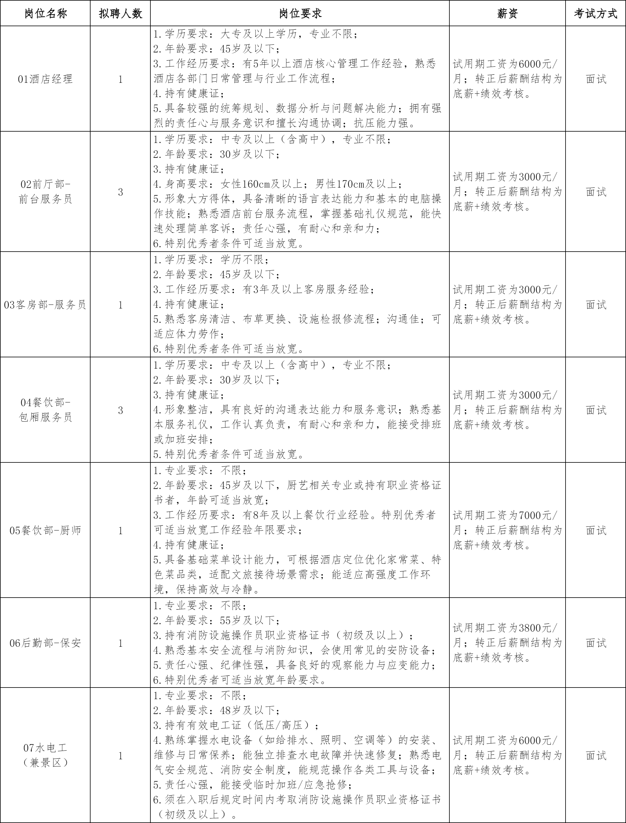 根据考察和体检情况,按照人岗相适的原则,经招聘领导小组研究后确定拟聘用人员名单,并在吉安人事人才网(www.jarencai.com)公示5个工作日。对公示无异议或有异议但反映问题经查实不影响聘用的,由吉安市青原区两山人力资源服务有限公司签订劳动合同并委派至青原山阳明酒店工作。