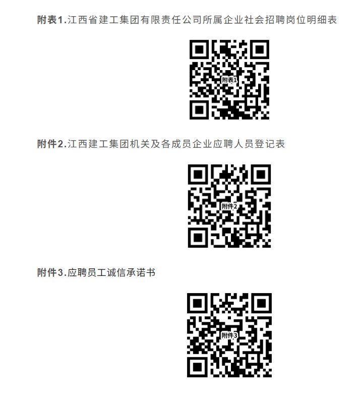 具体岗位类别、报告条件、具体任职要求、岗位描述、招聘咨询电话、投递邮箱信息等内容详见《江西省建工集团有限责任公司所属企业社会招聘岗位明细表》(附表1)。