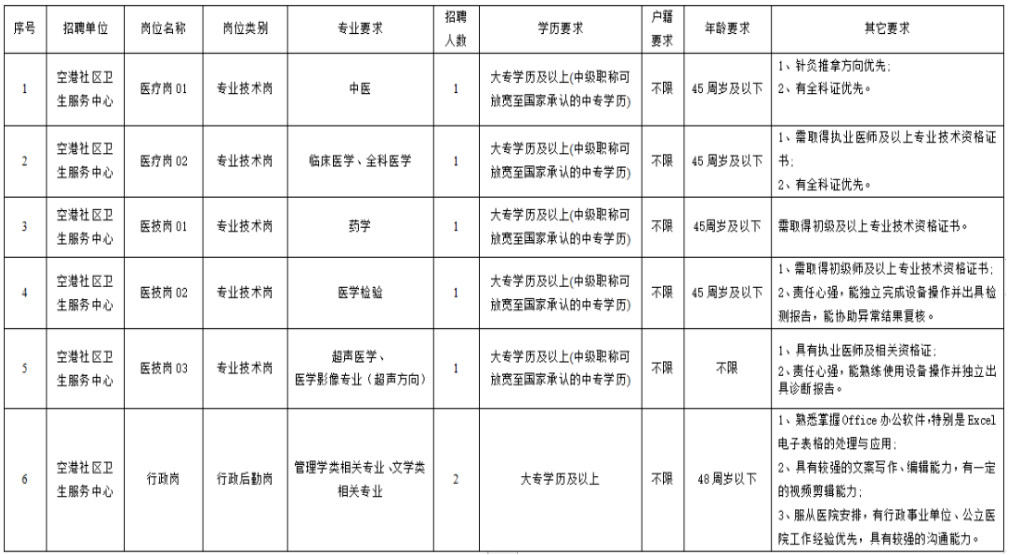 面试相关安排见医院公众号(名称:北京市顺义区空港社区卫生服务中心)。