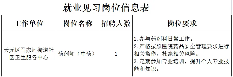 4.见习岗位:药剂师(中药),为见习人员提供多样化的实践选择;