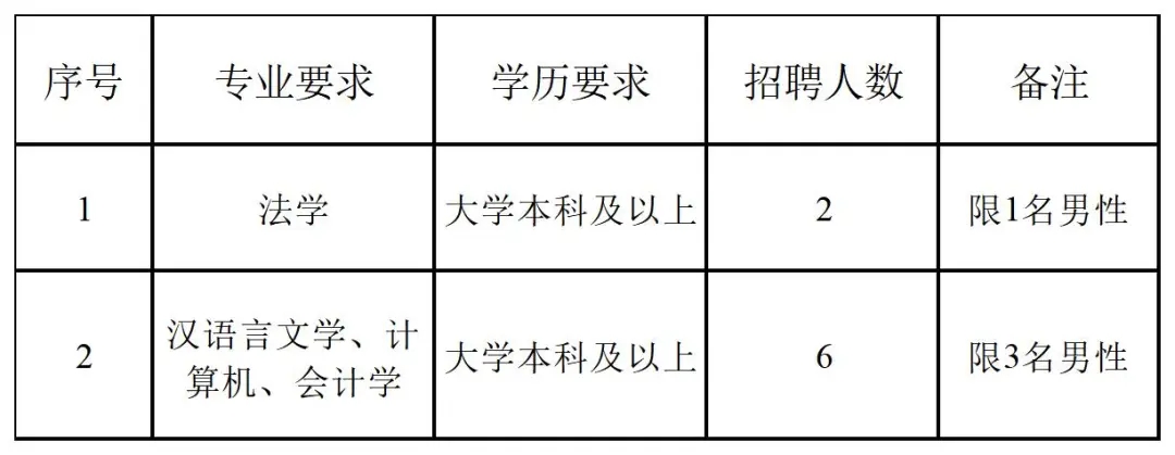 6.具备国家教育行政主管部门认可的大学本科及以上学历,并已取得相应证书,专业为法学、汉语言文学、计算机、会计学;