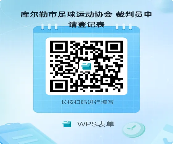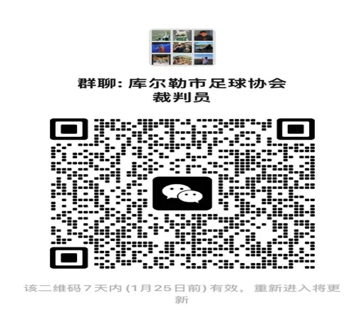 方式:请申请者扫描以下二维码并如实填写《库尔勒市足球运动协会裁判员申请登记表》,自愿加入“库尔勒市足球运动协会裁判员微信群”,如人员已满请微信或电话联系相关负责人。