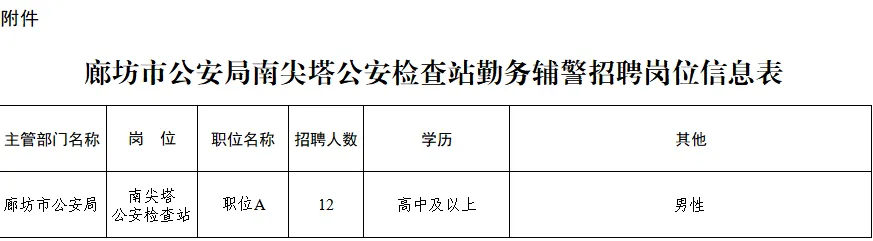 为充分利用社会优质人力资源,提高行政效能,根据实际工作需求,廊坊市公安局现面向社会公开招聘警务辅助人员。