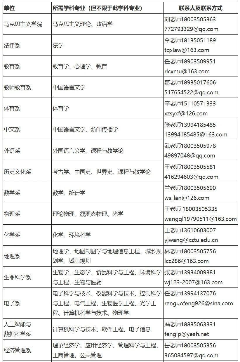 应聘人员请将个人简历电子版发送至对应的各单位联系人电子邮箱和xzsyrsc@163.com。应聘者邮件标题格式统一要求为:应聘岗位+姓名+学科专业。