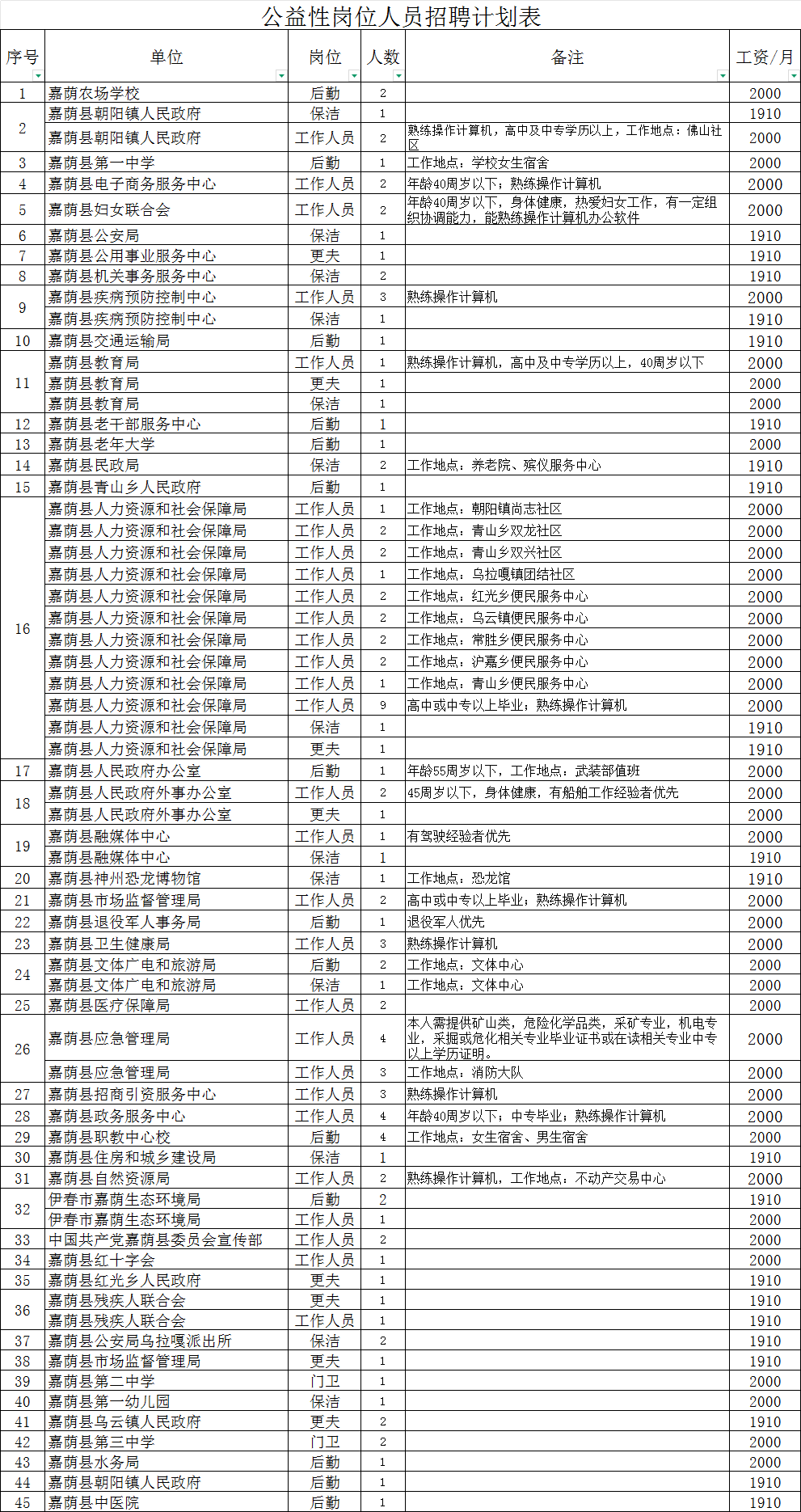 (二)招聘岗位:公益性岗位工作人员招聘计划表。