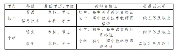 4、本次招聘岗位专业要求:毕业证书上的专业或教师资格证上的学科(以上两项必须有一项)应与报名岗位名称和对应专业相符。