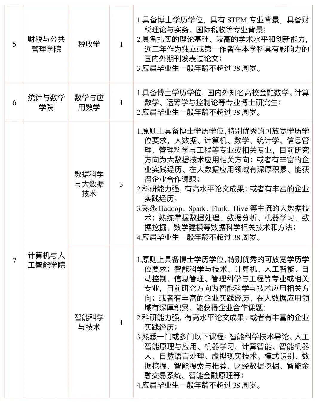 骨干教师:原则上具有博士学历学位,应届博士毕业生38周岁以下,特别优秀的可放宽学历学位要求,根据其学术基础和承担任务给予相应的待遇,详见下表。