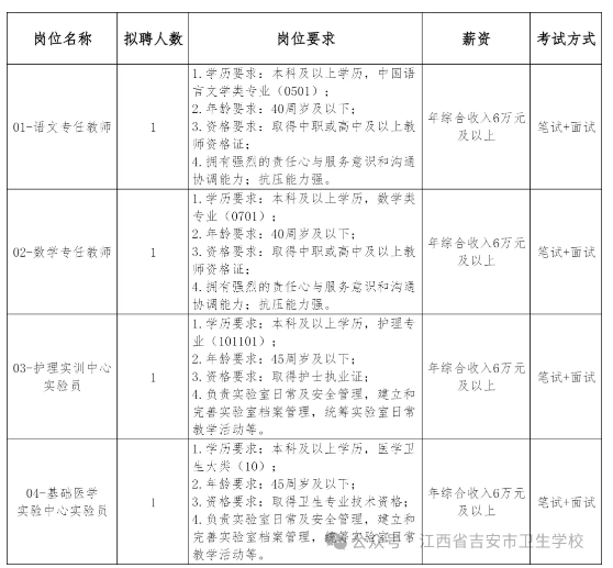 1.2026年江西省吉安市卫生学校招聘岗位及任职要求