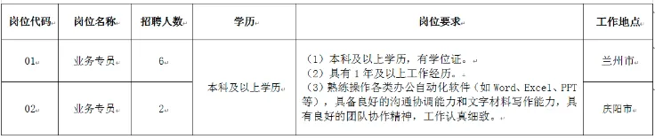 本次共招聘编外聘用工作人员8名。具体招聘岗位、人数及岗位要求详见《甘肃省人力资源市场公开招聘编外聘用工作人员岗位信息表》(以下简称《岗位信息表》)(见附件)。