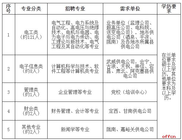 2.甘肃科源电力集团有限公司各供电服务公司本批预计招聘毕业生约102人,具体需求信息见附表。