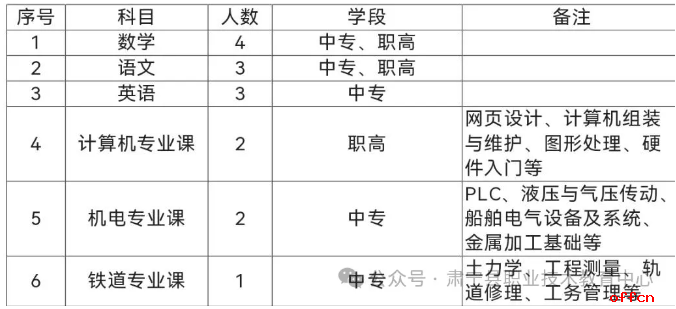 2.语文、数学和英语科目教师应具备本科及本科以上学历,具备本科及以上毕业证书。计算机、机电、铁道专业课教师应具备相关专业专科及以上学历,具有专科及以上毕业证书。