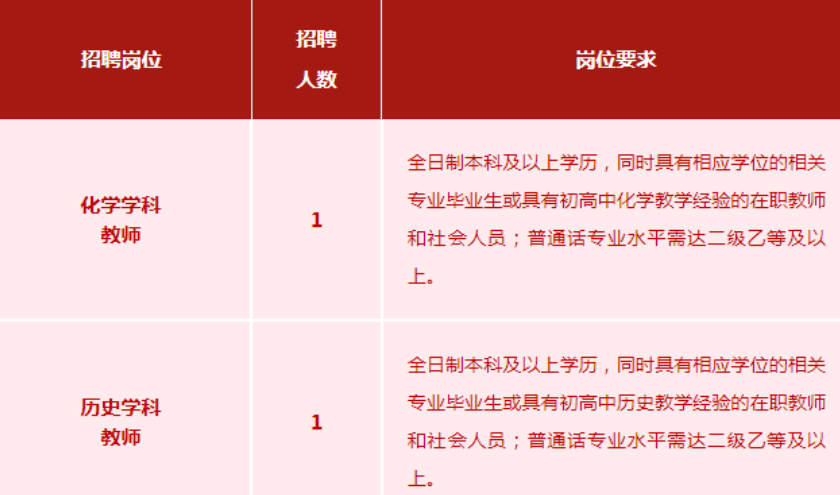 全日制本科及以上学历,同时具有相应学位;经验教师可适当放宽标准;