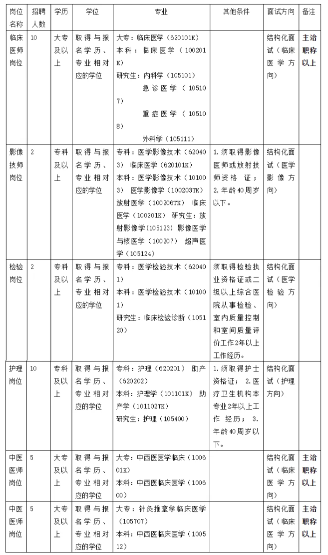 9.其他要求:身体健康,能适应基层医院工作节奏;退休人员若身体条件允许、业务能力强,可酌情考虑返聘。