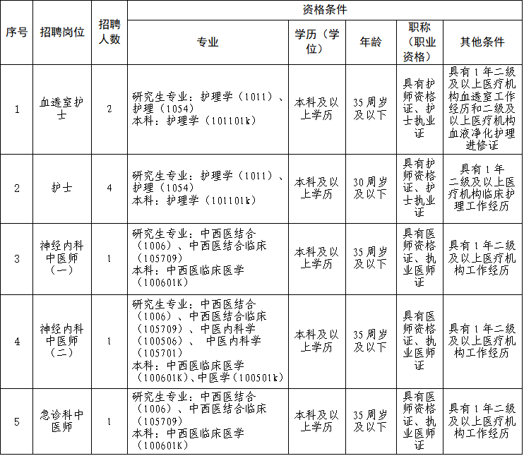 抚州市中医医院(抚州医药学院附属中医医院)创建于1953年,是市政府举办的集医、教、研于一体的三级中医综合医院。现有赣东大道院区和临川大道院区两个院区,托管赣闽产业园社区卫生服务中心、青云社区卫生服务中心,牵头建设市中医医院城市医疗集团。因医院发展需要,现向社会公开招聘以下岗位人员。